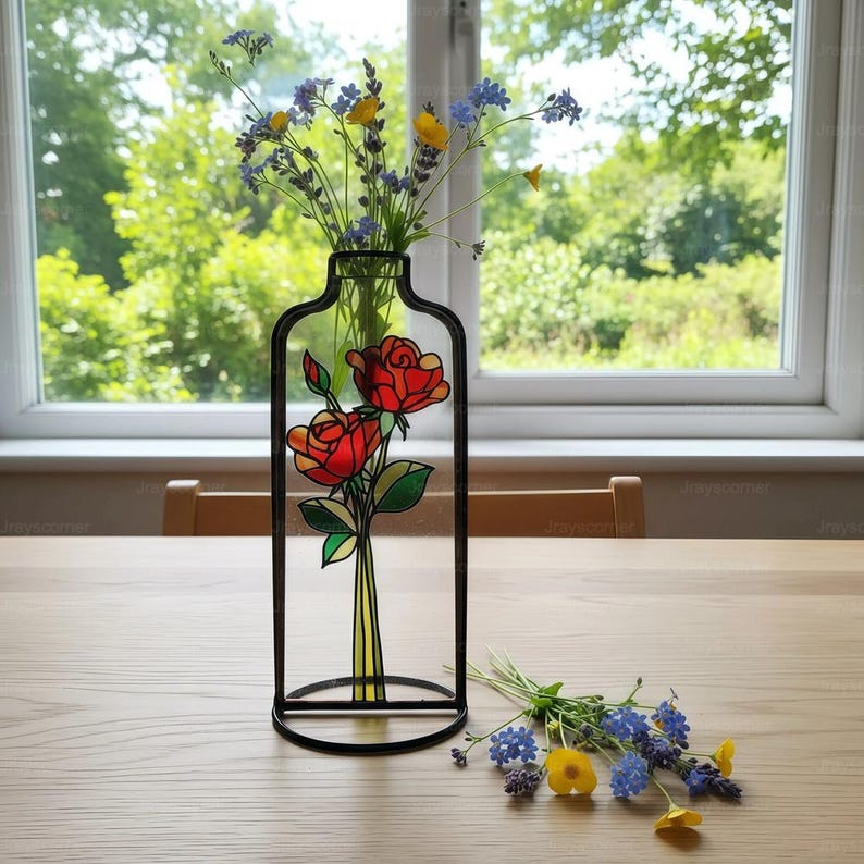 Celebrate the people you love with our stunning, personalized Birth Flower Suncatcher Vases. This unique piece of home decor combines the beauty of stained glass art with the functionality of a minimal, modern vase.