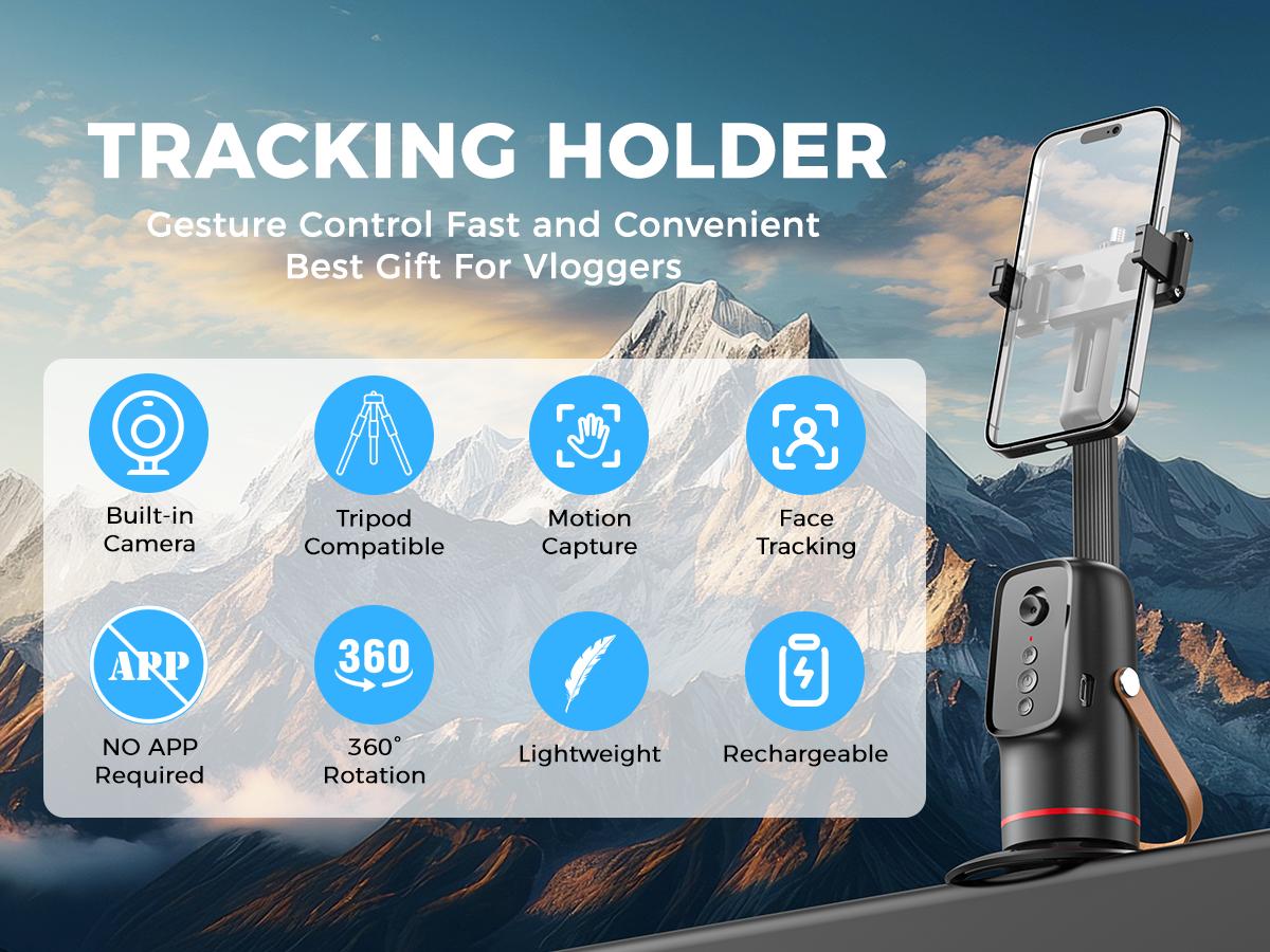 Auto Face Tracking Tripod Gesture Control Function: This tripod features a gesture control function, enhancing your shooting experience. Perfect for live vlogs, streaming, and video recording. 360° Rotation: The tripod offers 360° rotation, allowing for versatile shooting angles. Ideal for capturing both face and body shots. Smart Shooting: Designed for smart shooting, this tripod is a must-have for vloggers and content creators. It includes a phone mount for easy setup. Accessories and Compatibility Selfie 360 Rotating Phone Stand: The tripod comes with a 360 rotating phone stand, making it perfect for selfies and group shots. Smartphone Vlogging Kit: This kit is specifically designed for smartphone vlogging. It includes all the necessary accessories for a complete vlogging setup. Product Features Face Body Phone Camera Mount: The tripod features a face body phone camera mount, ensuring stable and clear shots. Live Vlog Streaming Video: Ideal for live vlogs, streaming, and video recording. This tripod is a versatile tool for content creators.