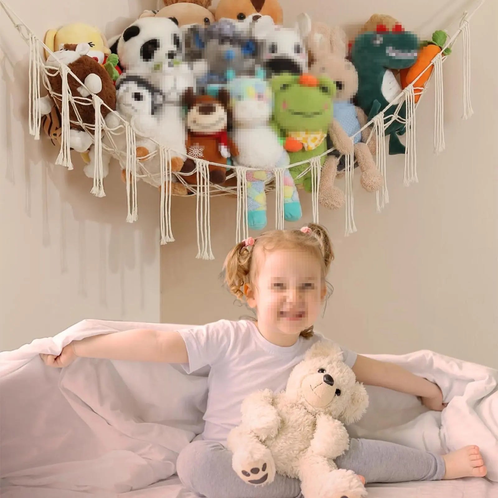 Large Capacity Plush Toy Hammock: Stuffed animal net or hammock size is 39" x 39" x 60", this stuffed animal hammock can hold a lot of stuffed animals and dolls, as well as other toys or clothes. Durable And Stretchable: The stuffed animal hammock made of high-quality cotton rope has good resilience, not easy to break, and will not deform over time; its elastic edge can easily hold toys of different sizes and types, which is very practical . Net For Stuffed Animals In The Corner: The corner plush toys net holder can make the most of the corner position, keep house tidy, and free up valuable space for your children to play. It is an alternative to bean bags, storage boxes, baskets and litter boxes. Turn Messy Toys Into A Decoration: Transparent mesh design makes the toys have good visibility, suitable for displaying stuffed animals; the boho stuffed animal net is also a good decoration for your room, at the same time for your boy /Girls create a cozy room. Easy To Install: No need to go to the hardware store, the package comes with all the accessories to install the organizer. The stuffed animal net or hammock is easy to install in the corner of the room, it is an ideal net for stuffed animals for a bedroom or children's room.