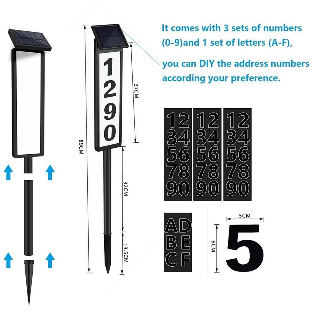 The solar address sign body is made of high quality ABS material and aluminum alloy, which is durable and waterproof. It is suitable for use in all kinds of weather.