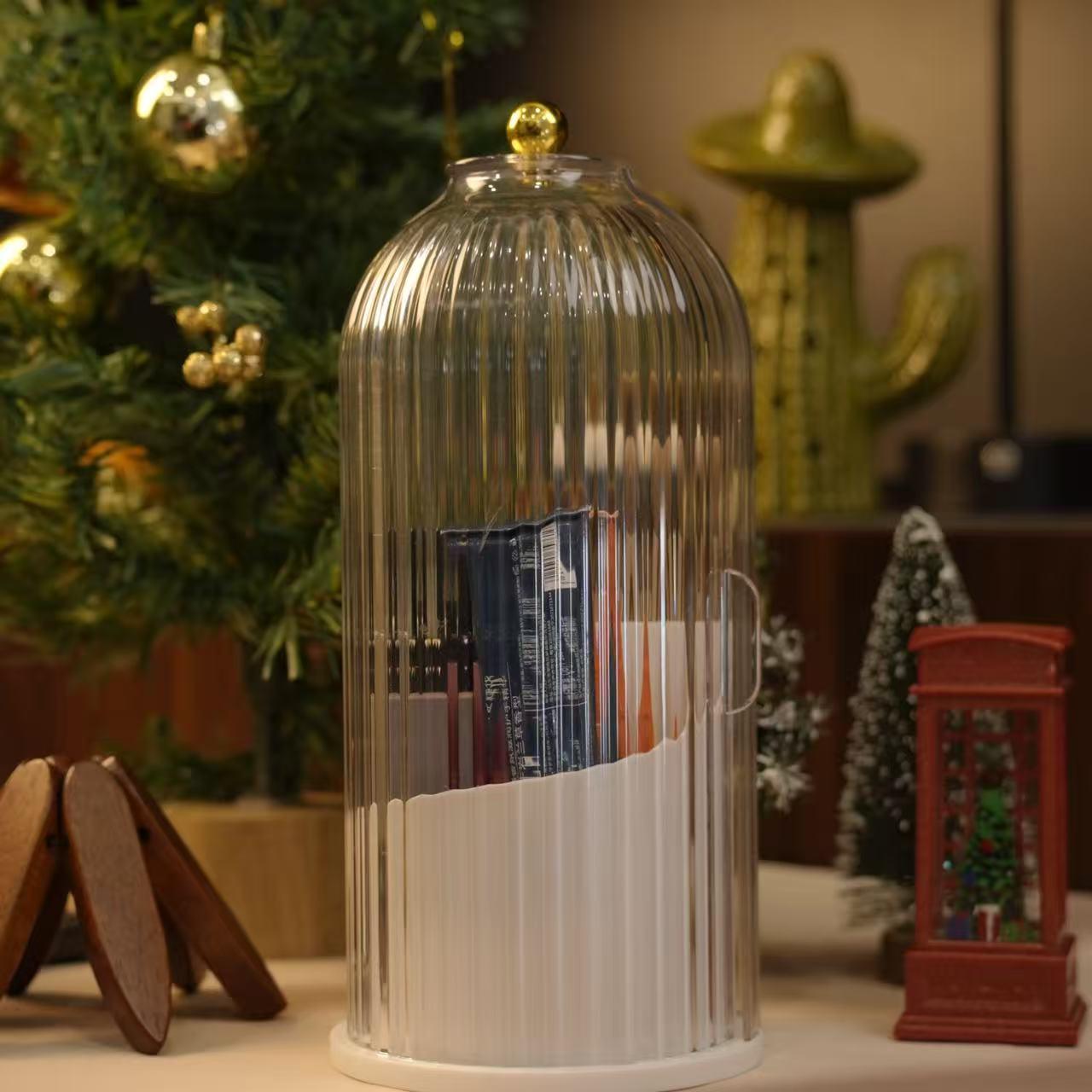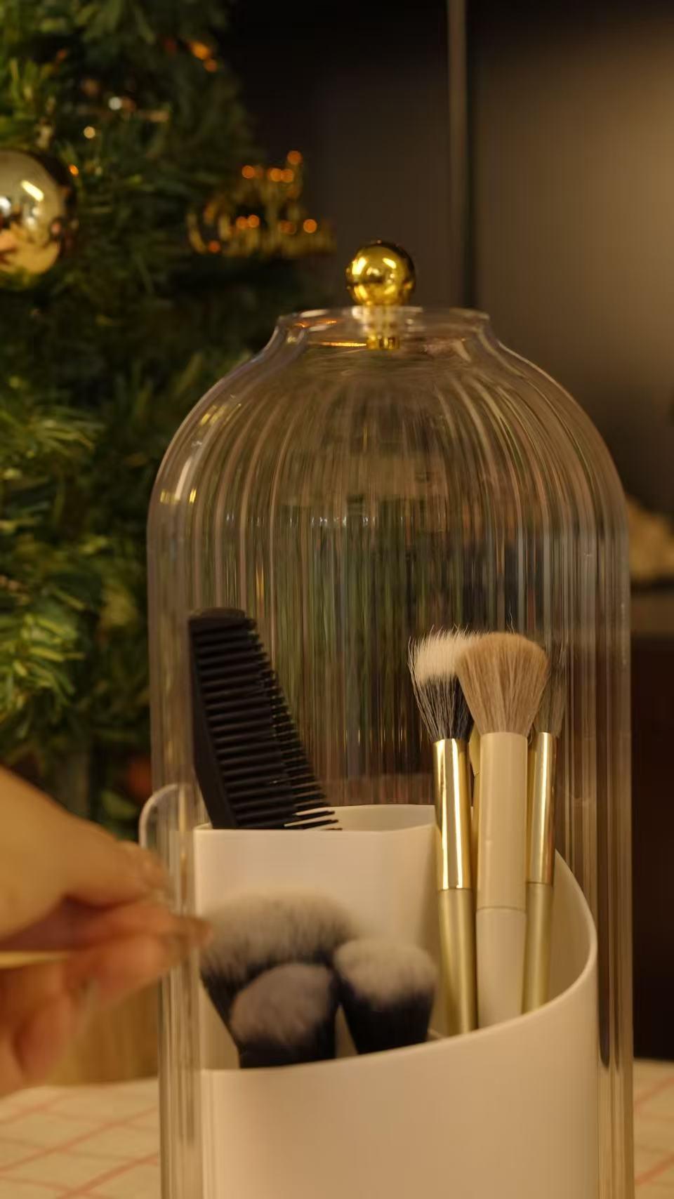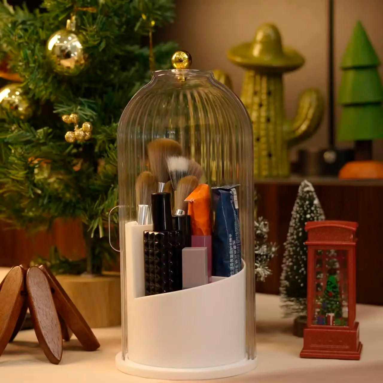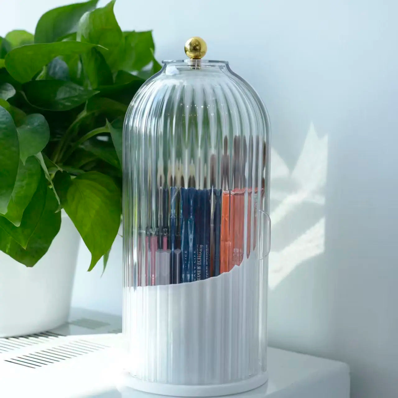 Perfect Gift for Any OccasionThis dustproof, multi-purpose brush holder keeps your bathroom or desk neat. The 3-slot design holds toothbrushes, toothpaste, or makeup brushes. It's perfect for organizing small items efficiently. A thoughtful gift for any occasion, it's ideal for birthdays, Valentine's Day, or Christmas. This organizer is a practical and stylish choice for anyone who values organization. Perfect Size for Daily Use – Measuring 4.8 in × 9.84 in, this box is roomy enough for books, accessories, or essentials, yet compact enough to fit in closets, shelves, or travel bags. 360° Spinning DesignThe 360° spinning holder makes access effortless. Anti-slip and drainage features ensure a tidy and hygienic space. You can easily reach your brushes without slipping. The transparent premium plastic material adds a touch of elegance to your bathroom or vanity. It's designed to enhance your daily routine with convenience and fun.️ Practical and StylishA perfect present for Mother’s Day, Father’s Day, Valentine, Xmas, or birthdays. This organizer is practical, stylish, and loved by anyone who enjoys organized living. It's a thoughtful gift that combines functionality with aesthetic appeal. Give the gift of organization today!