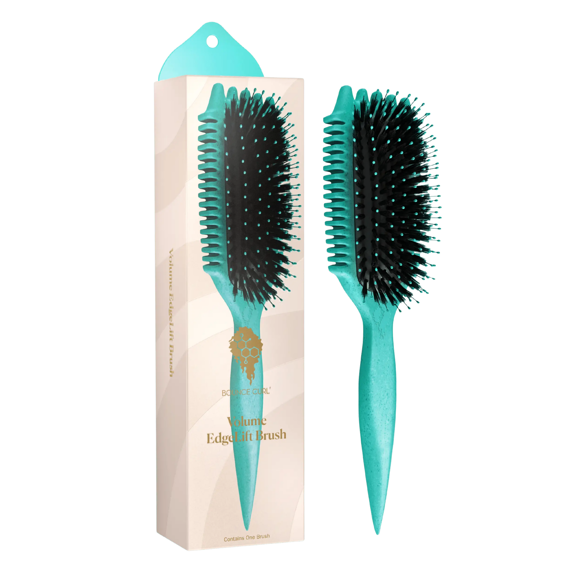 What It Does Introducing our NEW custom-made, patented Volume EdgeLift Brush. The distinctive lateral edges of the Volume EdgeLift Brush have smaller spaces between them, resulting in smaller curl clumps to add more volume. Crafted from quality materials and specifically designed to enhance your waves, curls, and coils, the "EdgeLift" design crafted by our founder, Merian, sets this brush apart. This innovative 5-in-1 brush creates smooth, separated, and volumized small curl clumps while the handle provides precision parting and doubles as a heatless curling tool. Experience the remarkable styling potential of the Volume EdgeLift Brush and elevate your hair game to new heights. In comparison, our Define EdgeLift Brush creates defined curl clumps due to the larger spaces between the edges. The EdgeLift Brush collection is internationally recognized and has gone viral globally. Patents: The Volume EdgeLift Brush collection is internationally recognized and has gone viral globally. Patented in the US USD1,028,527 S, EU 15036831-0001, AUS 202414179. World wide patents pending. Hair texture and pattern: All. Ideal hair length: More than 3 inches/7.6 centimeters. Hair goal: Create enhanced volume. Features and Benefits Versatile 5-in-1 brush: smooths, separates and volumizes while the handle provides precision parting and doubles as a heatless curling tool. Narrow side edge design: separates and volumizes curl clumps effectively. Top edge design: creates less volume and more clumping for bangs, layers, and shorter hair. Dense vegan boar bristles: provide more separation and smoothing for extra volume and may reduce frizz. Dense flexible round-tip bristles: enable easy gliding for added volume while minimizing breakage. Hourglass handle: parts hair precisely and multitasks as a heatless curling tool. 4x thicker brush pad: supports long-lasting durability. Ventilation hole: dries quickly after use and cleaning. Quality PLA base and handle Patented design: trust this one-of-a-kind design! Others have tried to copy this unique design, but only the original Bounce Curl patented EdgeLift Brush collection will provide these superior benefits. Instructions for Use Start with wet hair or saturate with Water Mister, and detangle using the Detangling Brush. Apply your favorite Bounce Curl styling cream, rake or brush through hair, and break hair into sections using the Volume EdgeLift Brush handle. Utilizing the Volume EdgeLift Brush, start at the root and run the brush through the length of the hair, while turning your wrist to catch the hair in the side edges to effectively separating the strands into curl clumps. For shorter hair, layers or bangs, run the top edge through the hair where less volume and more clumping is needed. Scrunch the hair gently with hands. Optional next step is to scrunch in your favorite Bounce Curl styling and finishing product. Utilize Hair Drying Mittens to remove excess moisture, diffuse or air-dry hair, and enjoy your voluminous curls all day! Cleaning instructions to delicately clean the brush: 1. Remove hair from bristles using your fingers or a cleaning comb. 2. Spray a cleaner such as alcohol, Barbicide (for salons), or Bounce Curl Turmeric Purifying Hair & Scalp Mask. 3. Allow disinfectant or cleaner to sit on the brush for a maximum of 10 minutes, then rinse. 4. Set aside the brush to air dry completely.
